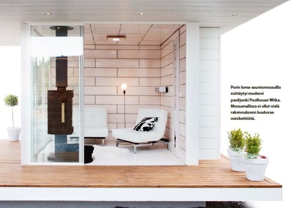 Suunnittelija Ville Witka halusi tehdä itselleen kesähuoneen. Näin syntyi Teijo-Talojen valmistalokonseptin pohjalle tehty Poolhouse Witka, joka sai ensiesityksensä Porin loma-asuntomessuilla. Talo tuodaan suoraan tasaiselle tontille,